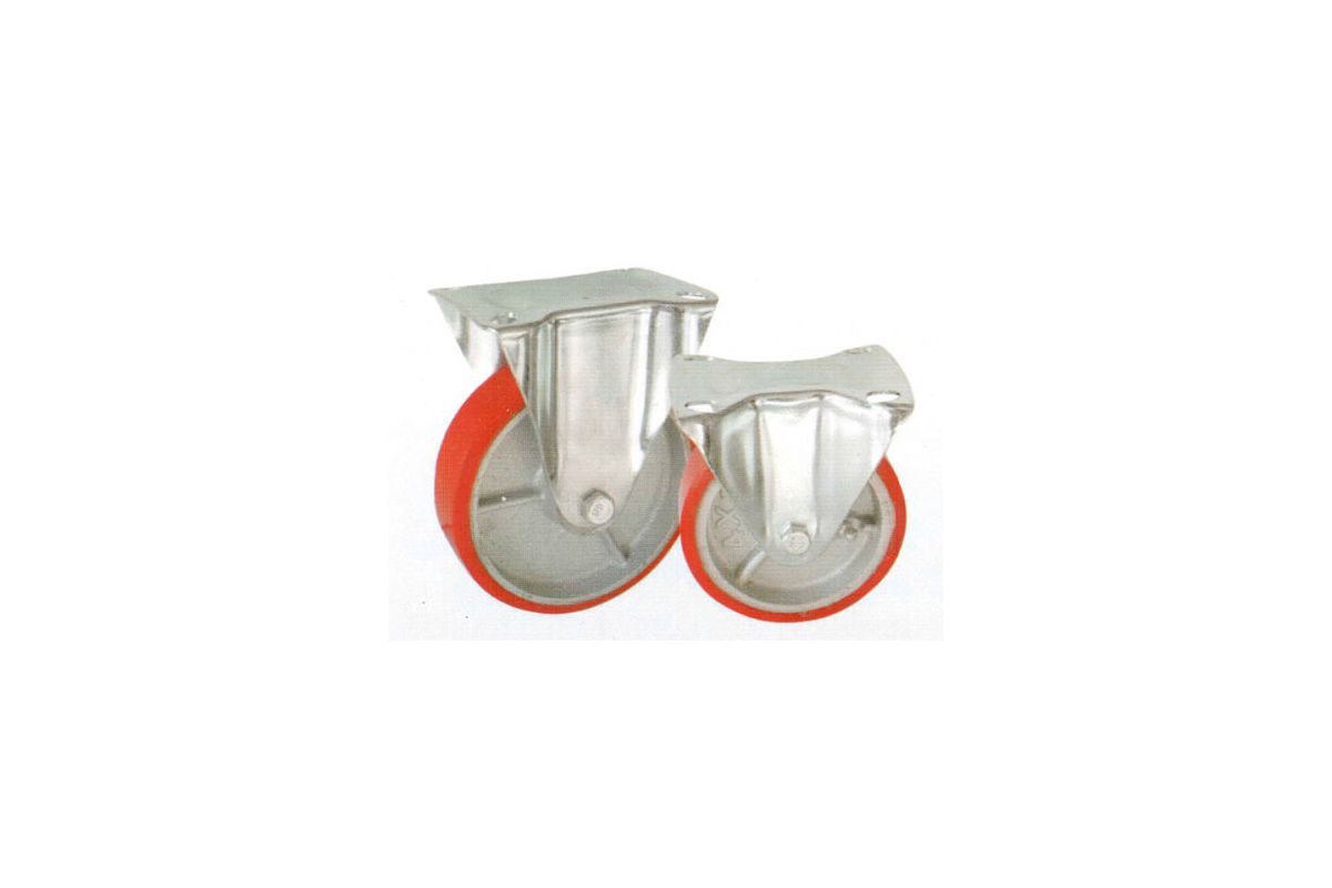 Колесные опоры промышленные, неповоротные, полиуретановый контактный слой, стальной литой обод, платформенное крепление