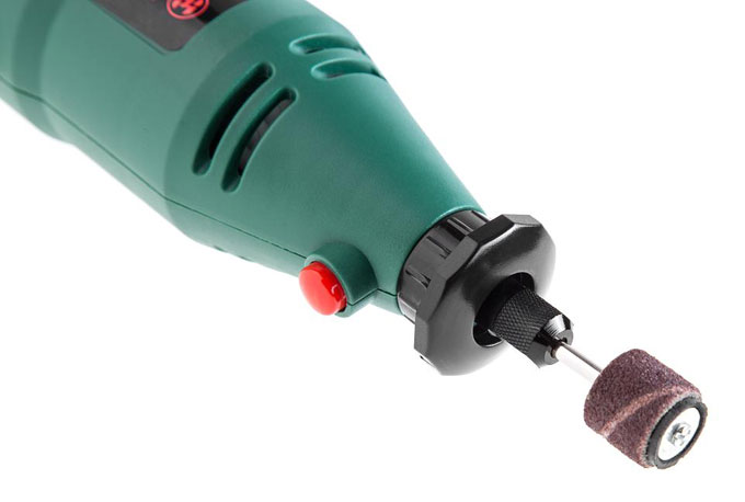 - Цанговый зажим 3,2 мм надёжно фиксирует оснастку. Цанговый патрон предотвращает прокручивание и порчу хвостовика. Для смены насадок в комплекте есть ключ.