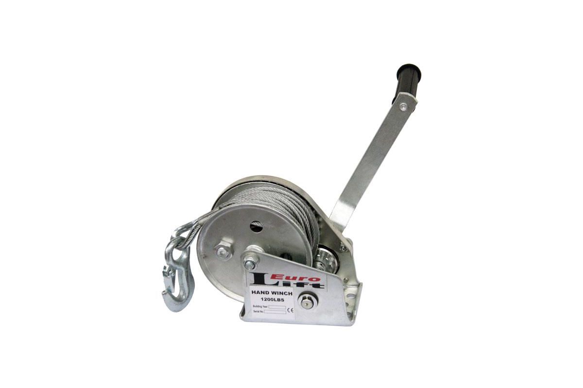 Лебедка EURO-LIFT AHW1200А 13662 г/п 550 кг, канат 10 м с крюком, барабанная с авт. тормозом