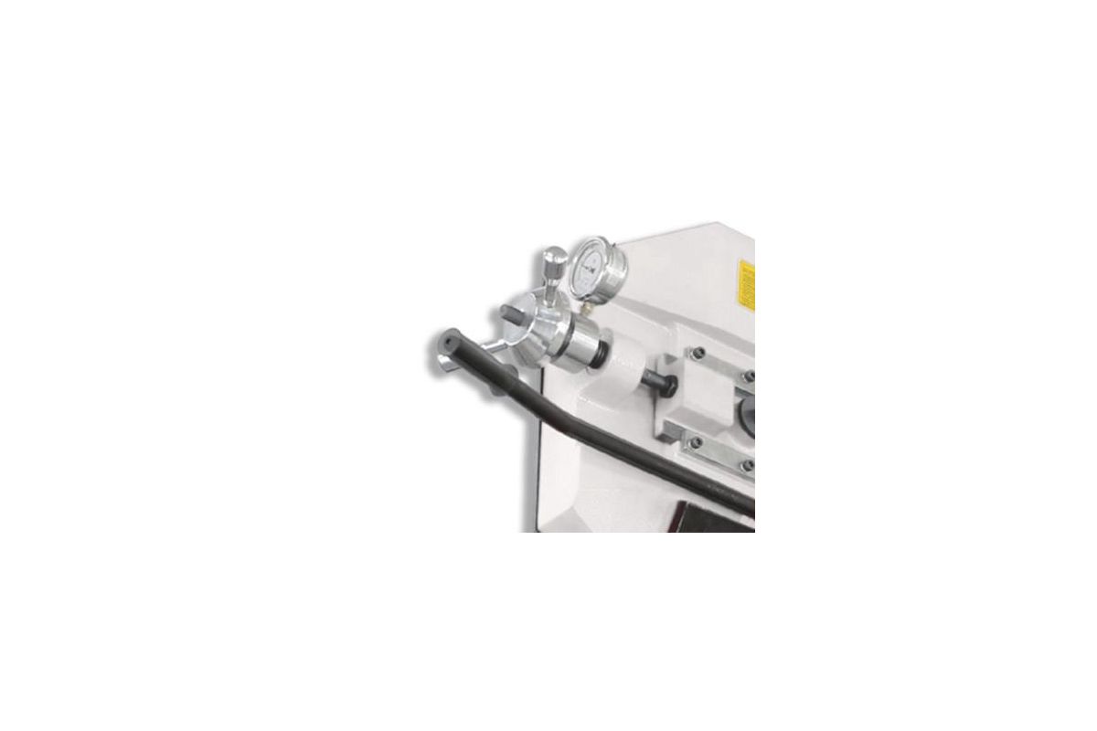 - Натяжение пилы осуществляется маховиком по тензометру, что позволяет контролировать натяжение полотна и тем самым получать стабильный рез и продлить срок службы полотна;