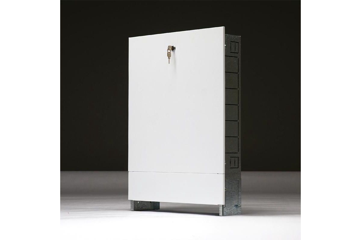 В боковых стенках корпуса шкафа выполнена перфорация, сегменты которой удаляются в любом удобном месте для подсоединения трубопроводов