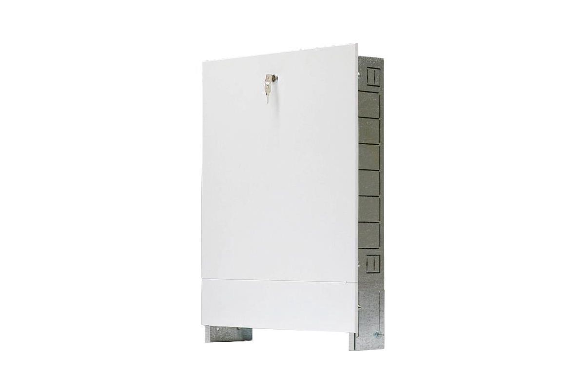 В боковых стенках корпуса шкафа выполнена перфорация, сегменты которой удаляются в любом удобном месте для подсоединения трубопроводов