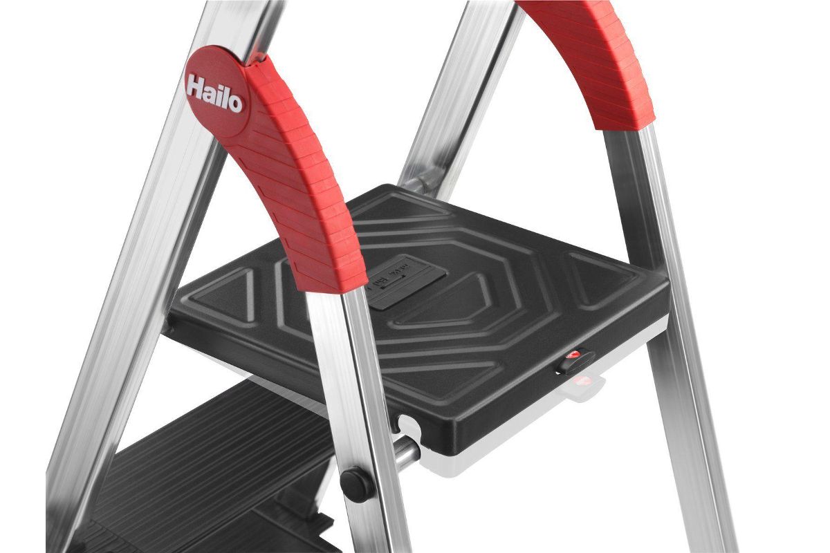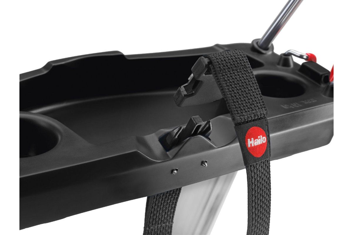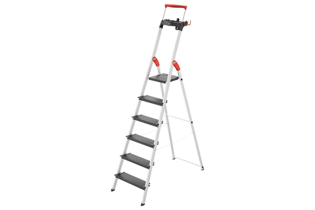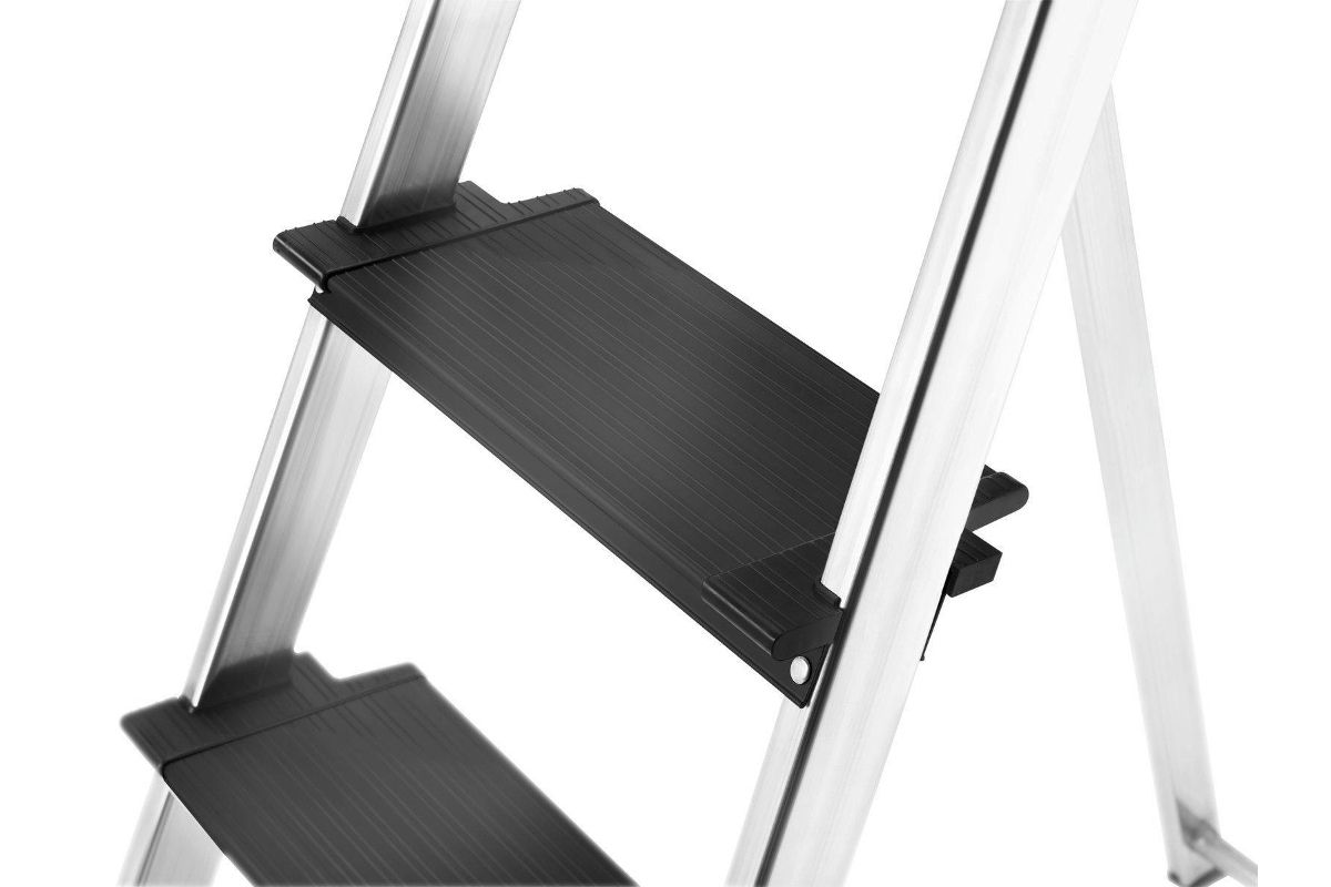 Алюминиевая стремянка выдвигающийся поручень безопасности, многофункциональный лоток для инстументов и мелких деталей + тканевый ремешок с замком для надежного крепления ведра или шнура электроудлинителя + 2 многофункциональных переставных крючка для крепления мелких инструментов.