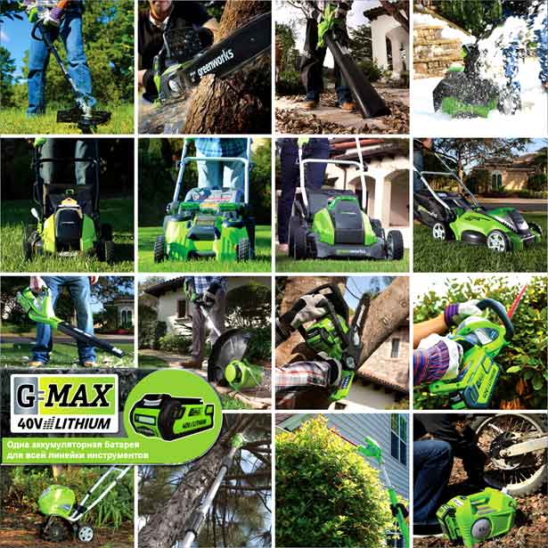 GREENWORKS знают по всему миру: в Америке, Европе и Азии. Для России это новый бренд, который всё чаще можно увидеть не только в магазинах, но и на дачных участках.